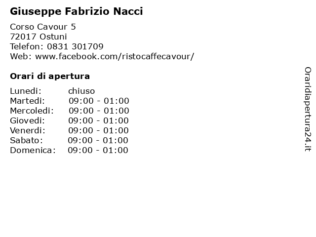 Nacci Giuseppe Fabrizio at the address: Italy, Apulia, Ostuni out of 138647 places. to the bar Caffe' Cavour Di Nacci Giuseppe Fabrizio or to the places that are closest to you Istruttore amministrati …